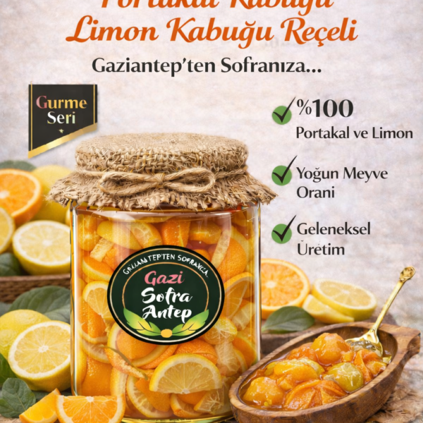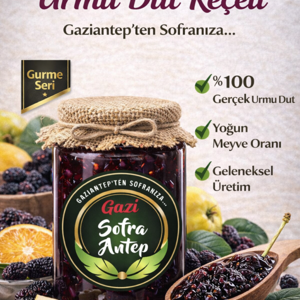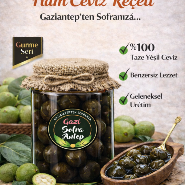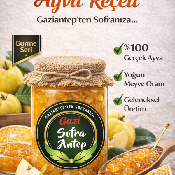 Reçellerimizde meyve oranı %80 olup şerbeti az tanesi boldur. Şeker olarak pancar şekeri kullanılmış olup geleneksel yöntemlerle odun ateşinde yapılmıştır.Net 800 gr